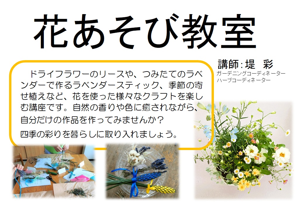 | 【開講期間】 | 春講座 5月上旬(ゴールデンウィーク後)から 秋講座 10月から ※終了時期は講座によって異なります。 |