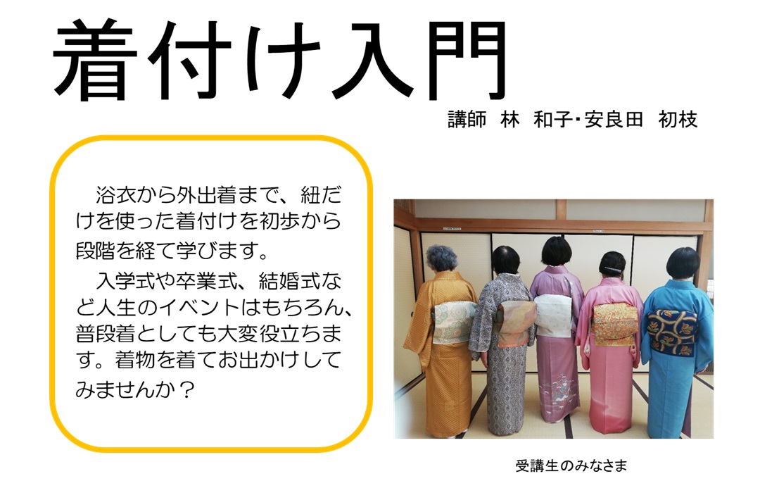 | ◆着付け入門 | ◆ゆる体操初級 | ◆ツボ療法 |